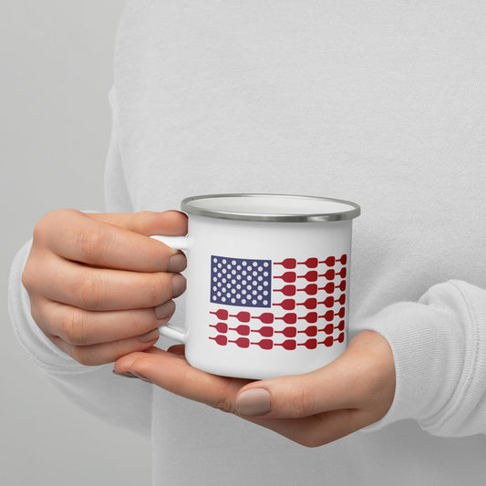 US Flag Pickleball Enamel Mug