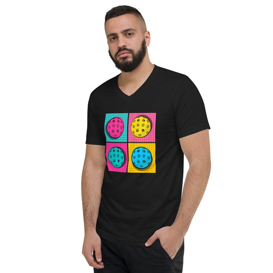 Neon Warhol Pickleball Unisex Short Sleeve V-Neck T-Shirt